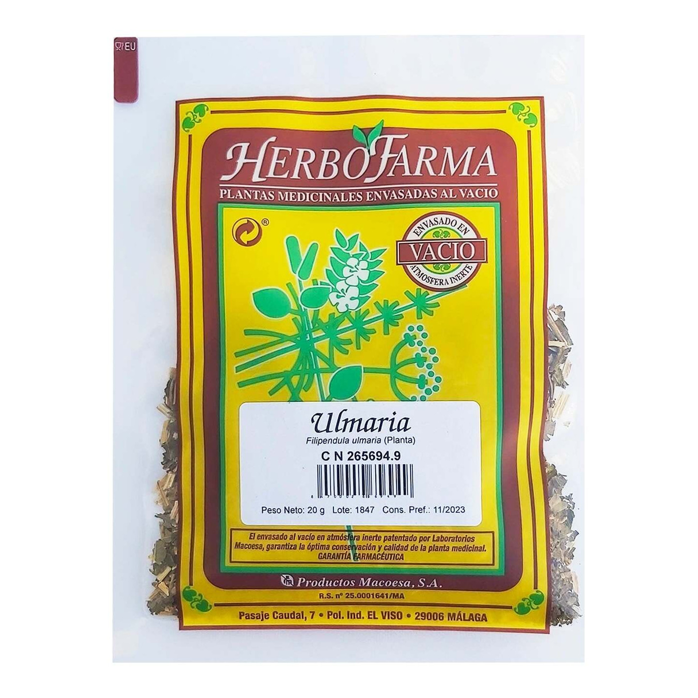 ACCIÓN Y DESCRIPCIÓNUlmaria, Reina de los prados.Partes usadas: Sumidad florida.Es una especie herbácea vivaz, de 50 a 200 cm de altura.El tallo es erecto, y puede ser simple o estar ramificado en la parte superior.En la parte inferior es leñoso.Suele ser glabro, aunque en ocasiones presenta pelos distribuidos por toda su superficie.Presenta hojas alternas, pecioladas o sésiles, imparipinnadas.Los foliolos son ovales, con la base redondeada, y los márgenes dentados o biserrados.Los foliolos s...
